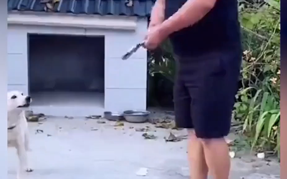 Thấy người lạ, chú chó nhe nanh sủa đầy hung dữ nhưng khi thấy chiếc cờ-lê vứt trước mặt thì cụp đuôi ngoan ngoãn.
