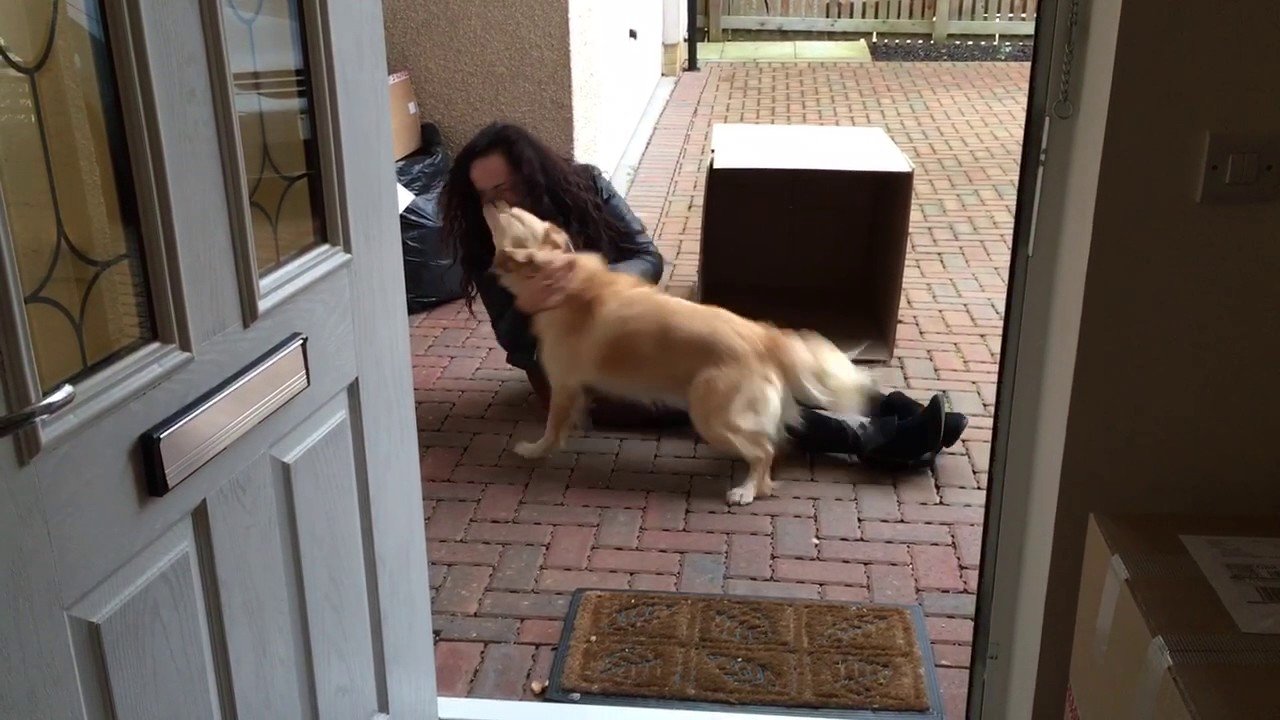 Chú chó mừng rỡ, đè chủ ra hôn tới tấp vì nhớ