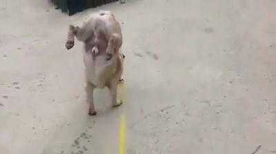 (VTC News) - Chú chó vừa đi bằng hai chân trước vừa tè tung tóe khắp sân.