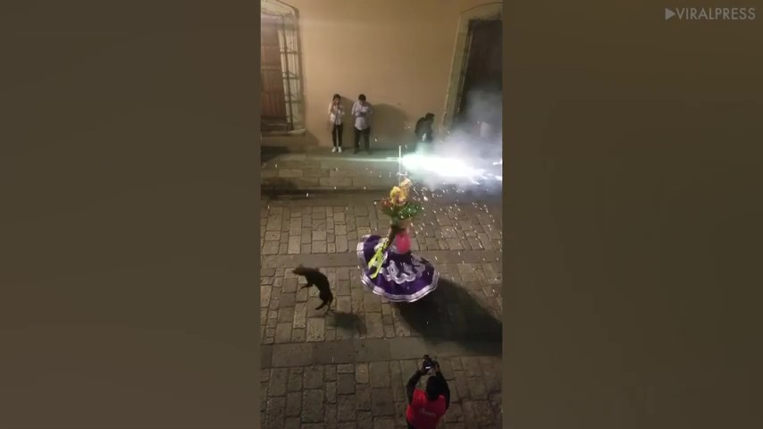 Phấn khích xem màn biểu diễn có pháo hoa, chú chó xông vào góp vui, "quẩy" tưng bừng.