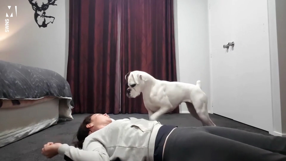 Chỉ sau 45 phút học, chú chó boxer (võ sĩ) sau đó đã thể hiện được khả năng hô hấp nhân tạo, “hồi sức tim phổi” trên một phụ nữ trẻ giả làm bệnh nhân.
