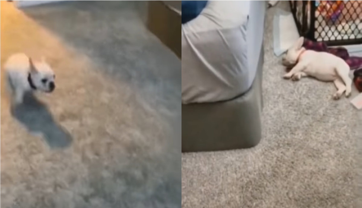 Đang phi như bay từ ngoài vào phòng, chú chó bỗng lăn quay ra ngủ trong tích tắc khiến người chủ bật cười.