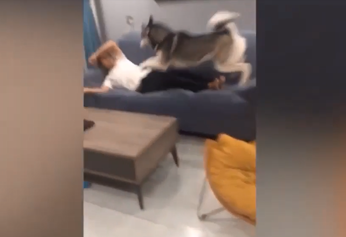 Chú chó to lớn "rửng mỡ" chạy cuồng lên trong nhà khiến chủ nhân đang nằm ngủ trên ghế sofa nhận kết quả đau đớn.