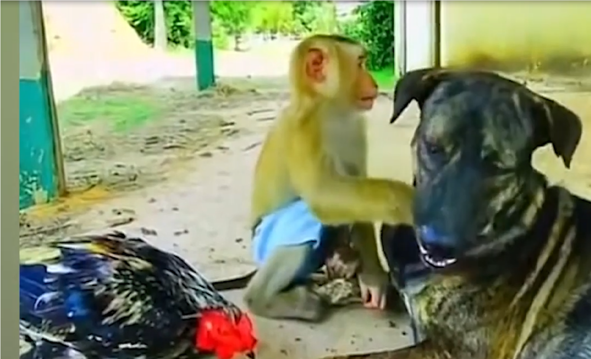 Chú khỉ bá đạo bắt chấy bỏ vào miệng chó