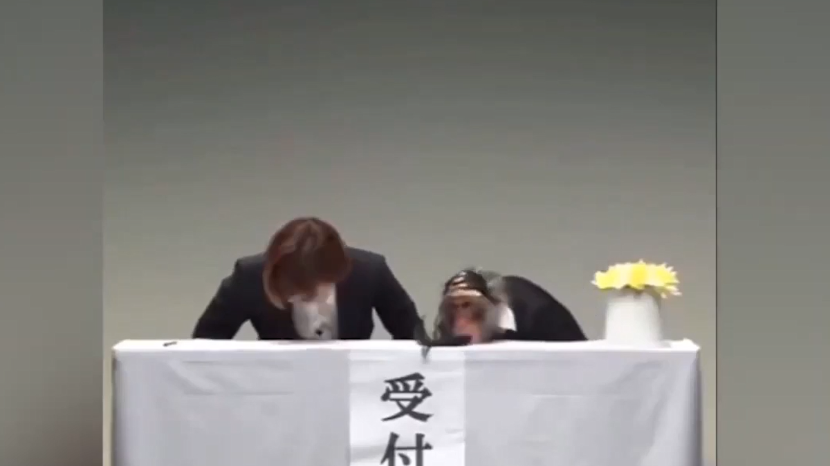 Khỉ há hốc mồm khi xem chàng trai làm ảo thuật