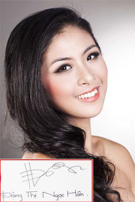 Chữ kí Hoa hậu Việt Nam 2010 Ngọc Hân có nhiều nét tương đồng với các kí tự toán học và vật lí.