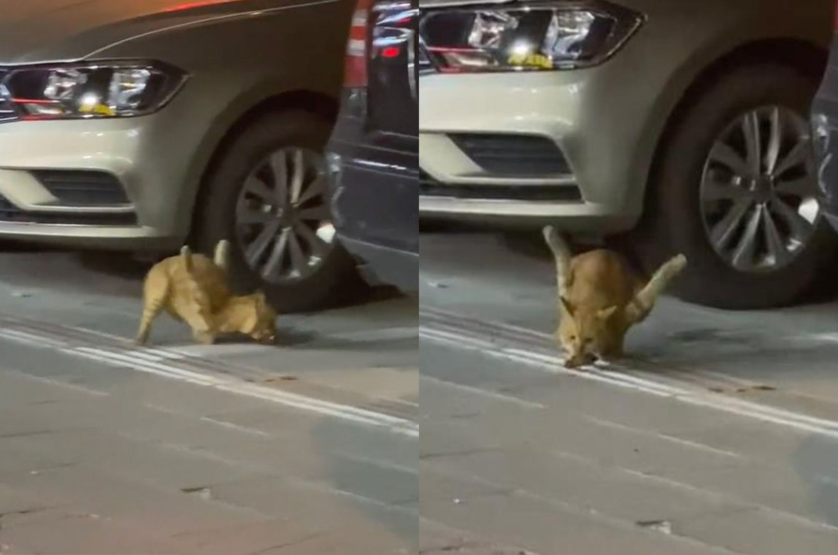 Do hai chân trước bị gập lên nên nó chỉ có thể đứng bằng hai chân sau. Khi tìm thấy một miếng thức ăn, nó chui ra khỏi gầm xe. Nó cố gắng giữ thăng bằng, đi lại gần thức ăn và gắp một miếng rồi loạng choạng lùi xuống gầm xe. Đoạn video chỉ vỏn vẹn vài giây nhưng đã khiến nhiều người xem rơi nước mắt.
