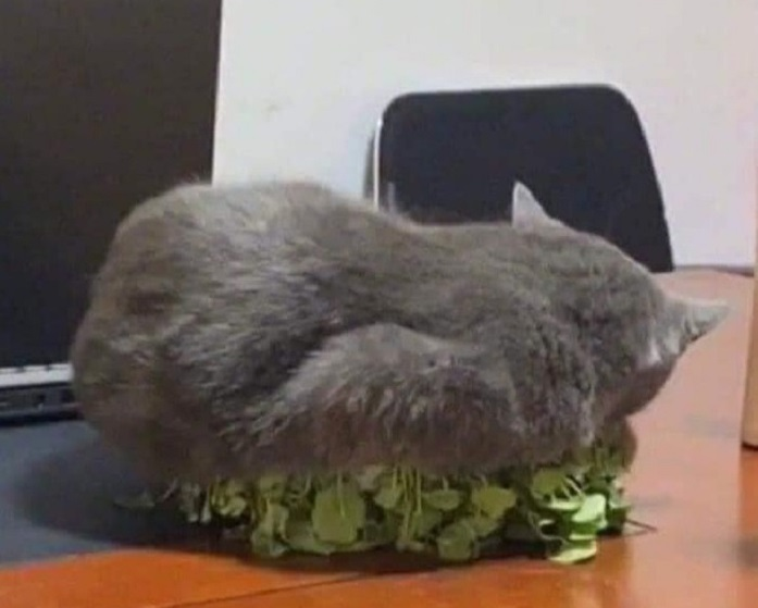 "Con Sen" đi làm về thấy chậu rau má trên bàn đang tươi tốt bỗng không thể nhận ra do chú mèo thản nhiên đặt mình lên, trông chẳng khác gì gà mái đang ấp trứng. Hậu quả để lại sau đó là chậu rau bẹp dí trông thật thảm.