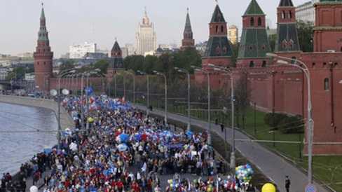 Khoảng 100.000 công nhân đã diễu hành ở Quảng trường Đỏ vào ngày quốc tế lao động (1/5) - cuộc tuần hành đầu tiên kể từ Liên Xô tan rã vào năm 1991.