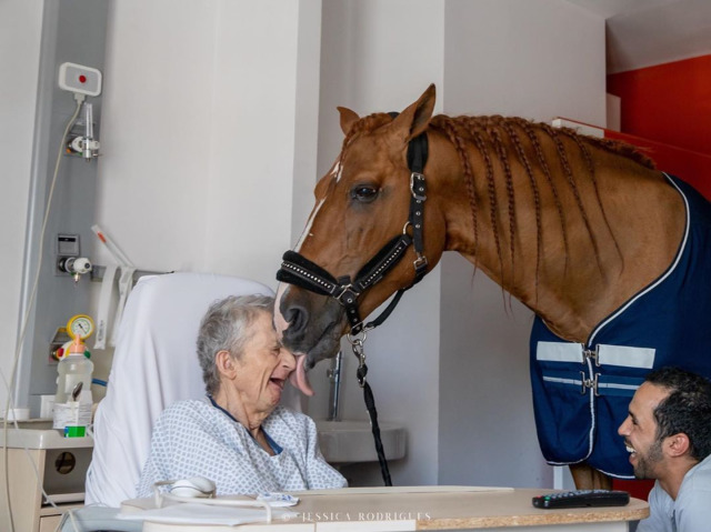 Chúng ta có thể đã quá quen thuộc với những chú chó trị liệu, nhưng đã bao giờ bạn nghe tới ngựa trị liệu chưa? Nếu chưa thì hãy gặp gỡ Peyo, chú ngựa đực 15 tuổi này đã dành cả ngày để an ủi, bầu bạn với các bệnh nhân ung thư cận kề giai đoạn cuối của cuộc đời trong bệnh viện Calais ở Pháp.