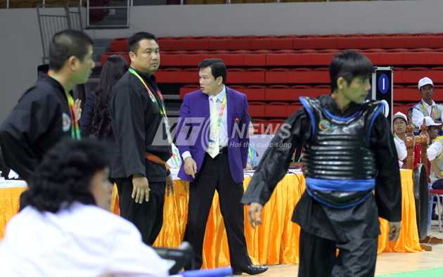 | Lãnh đội Pencak Silat Việt Nam, Nguyễn Ngọc Anh tràn sân vì bức xúc trọng tài (Ảnh: Hà Thành) |