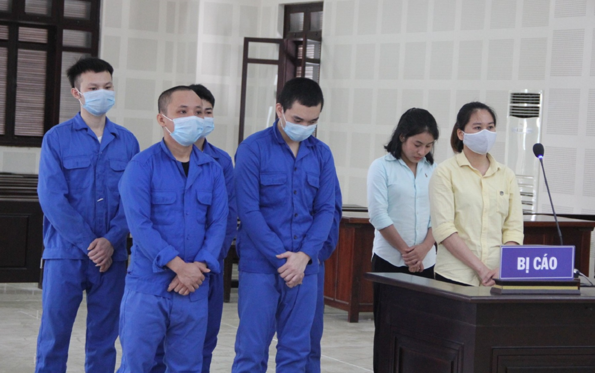 Các bị cáo Phạm Văn Quân (29 tuổi, trú huyện Vĩnh Bảo, TP Hải Phòng), Cao Xuân Dương (26 tuổi), Nguyễn Văn Tình (29 tuổi), cùng trú huyện Lương Sơn, tỉnh Hòa Bình, Trần Văn Mạnh (24 tuổi, trú TP Hạ Long), Trần Ngọc Sơn (26 tuổi, trú huyện Quế Sơn, tỉnh Quảng Nam) cùng bị xét xử về tội “Môi giới mại dâm”.
