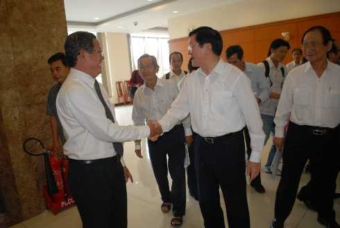 Chủ tịch nước Trương Tấn Sang (phải) gặp gỡ cử tri TP.HCM (ảnh: P.Linh)