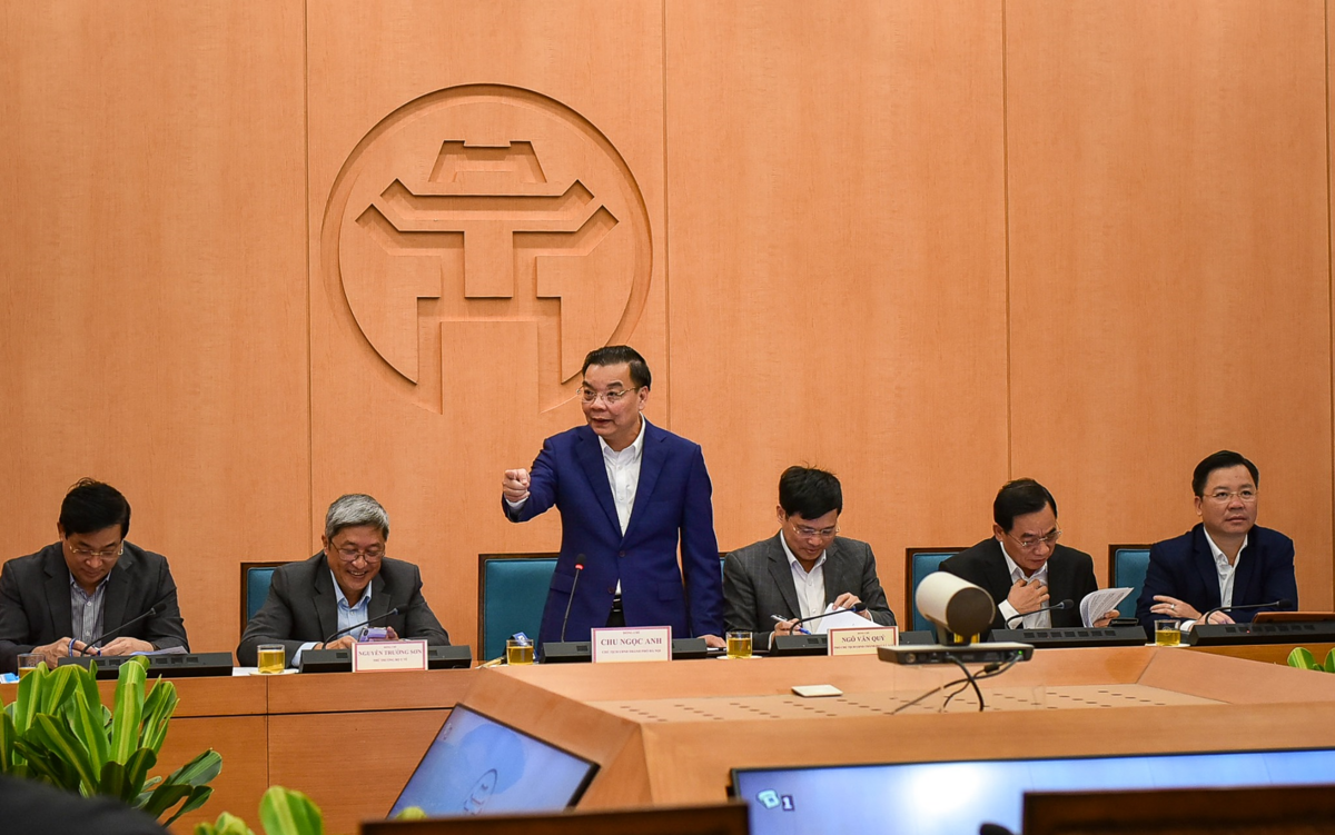 Chủ tịch UBND TP Hà Nội Chu Ngọc Anh phát biểu tại cuộc họp.