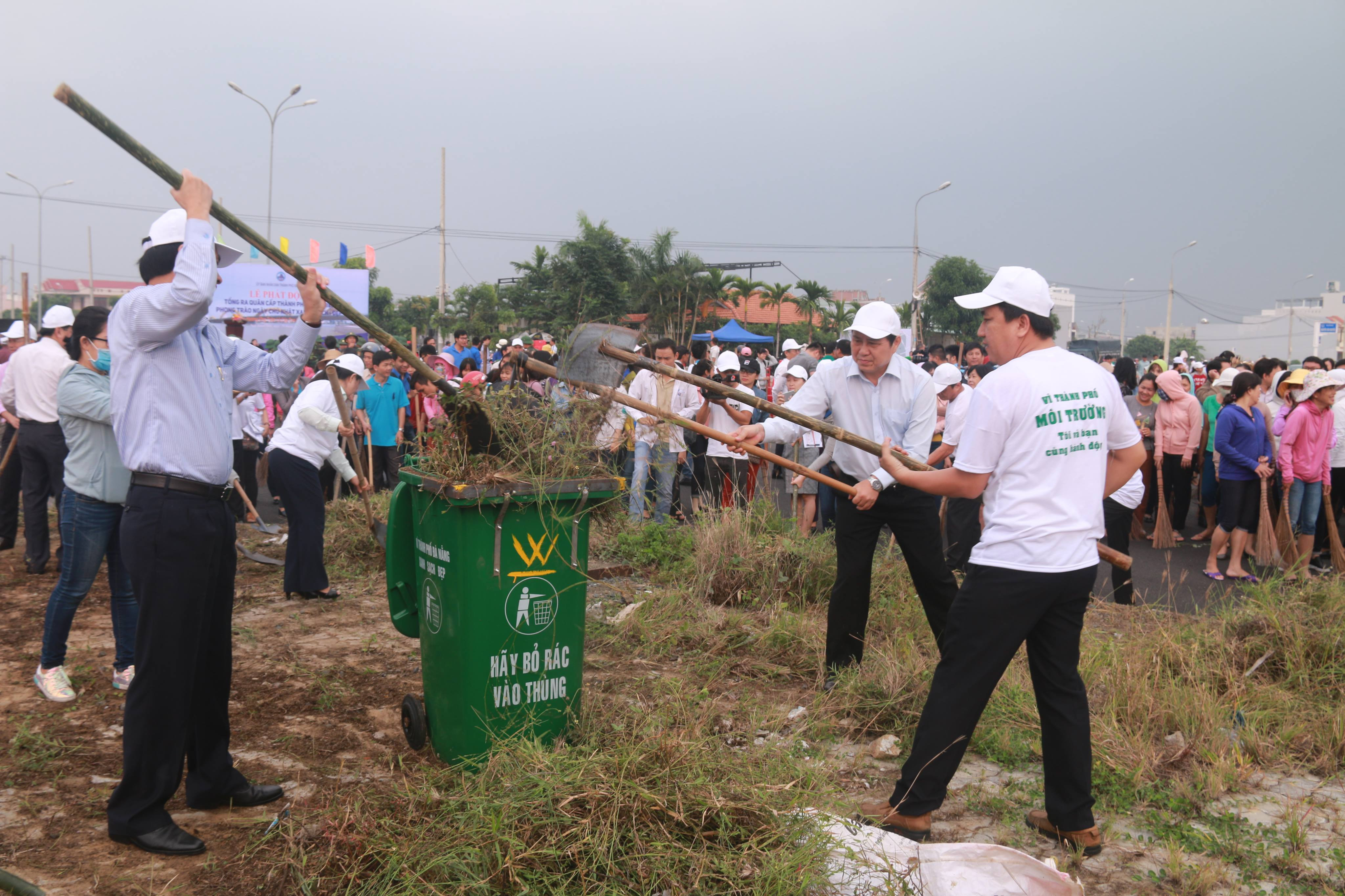 Ông Huỳnh Đức Thơ - Chủ tịch UBND TP Đà Nẵng đến dự buổi ra quân và tham gia làm sạch cỏ dại tại các khu đất trống.