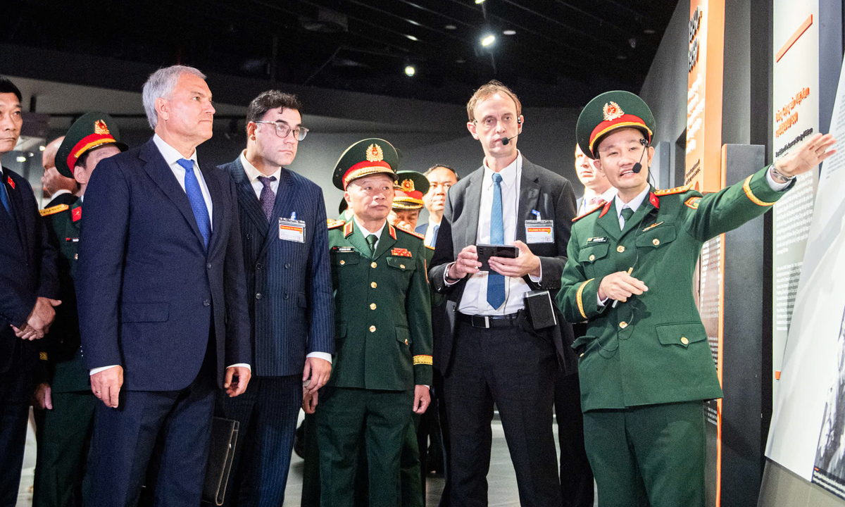 Trong khuôn khổ chuyến thăm chính thức Việt Nam và đồng chủ trì Phiên họp lần thứ 4 Ủy ban Hợp tác liên Nghị viện giữa Quốc hội Việt Nam và Duma Quốc gia Nga từ ngày 28-29/9/2025, Chủ tịch Duma Quốc gia Nga Vyacheslav Volodin và đoàn đại biểu cấp cao đã tới thăm Bảo tàng Lịch sử Quân sự Việt Nam.