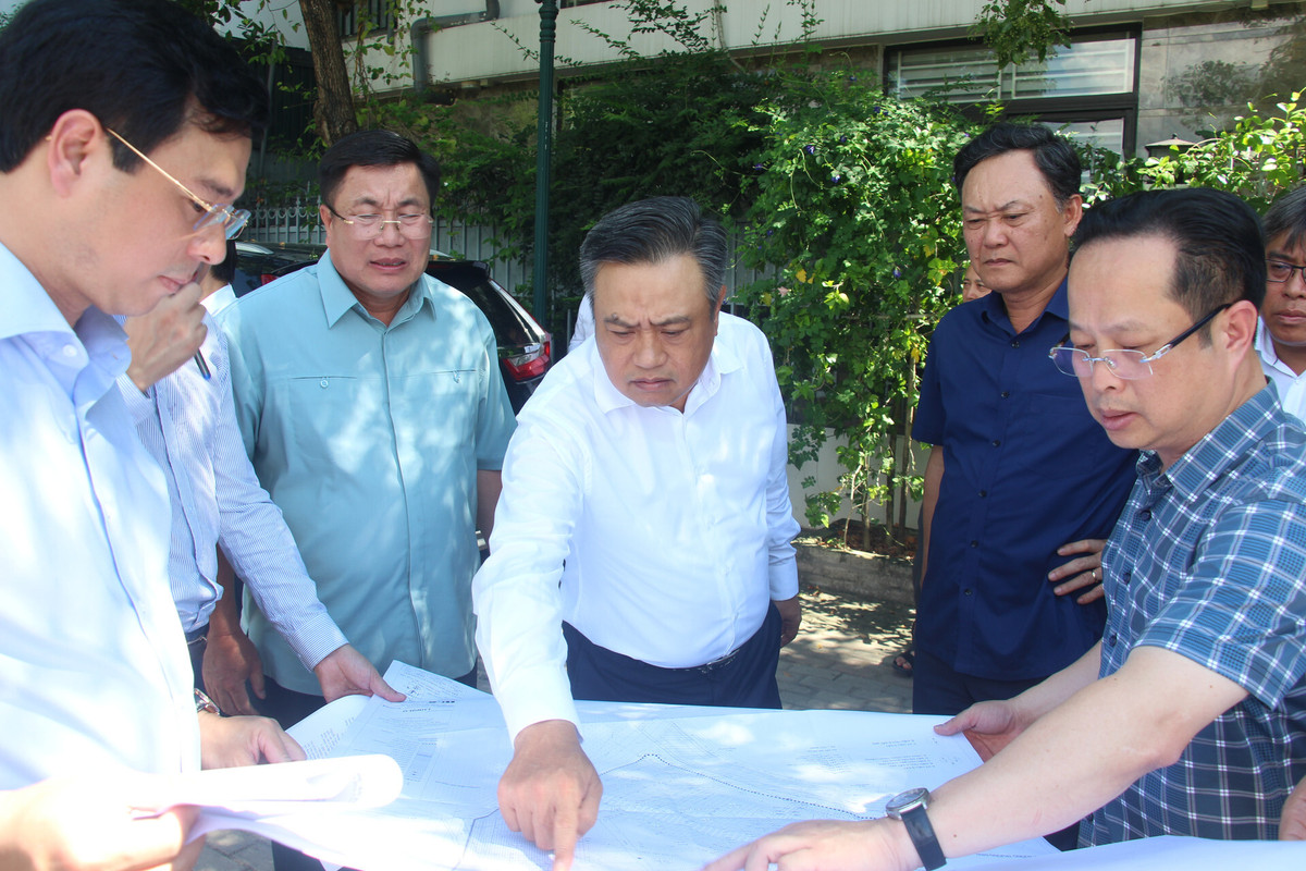 Trước khi làm việc, Chủ tịch UBND TP Trần Sỹ Thanh đã đi kiểm tra thực tế tại các ô đất nhận bàn giao từ Tổng công ty Đầu tư phát triển nhà và đô thị (HUD) để xây dựng trường công lập trên địa bàn phường Hoàng Liệt.