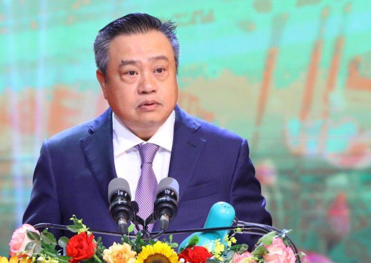 Chủ tịch UBND TP Hà Nội Trần Sỹ Thanh phát biểu tại hội nghị.