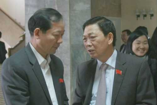 | Chủ tịch Nguyễn Thế Thảo (bên phải) và Chủ nhiệm UBKT Thành ủy Trần Trọng Dực trao đổi bên lề kỳ họp HĐND TP. (Ảnh Nguyễn Dũng) |