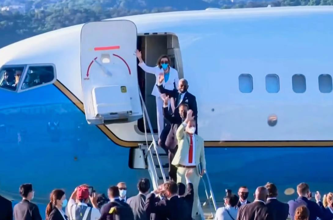 Chủ tịch Hạ viện Mỹ Nancy Pelosi rời Đài Loan. (Ảnh: Reuters).