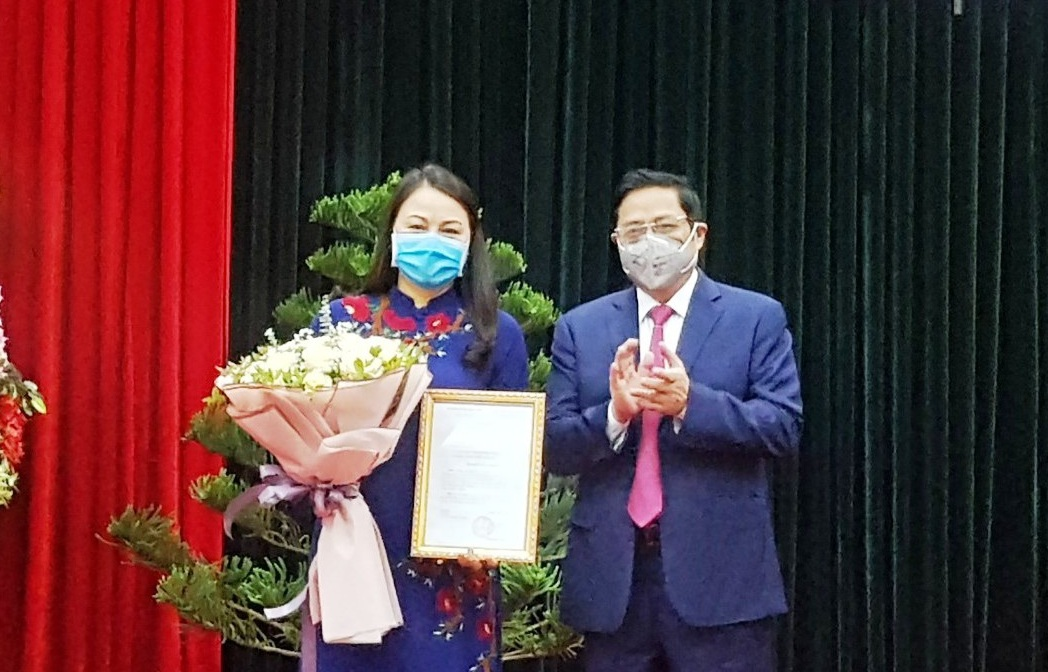 Ông Phạm Minh Chính trao quyết định cho bà Nguyễn Thị Thu Hà.