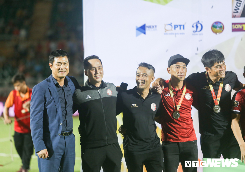 Chủ tịch Hữu Thắng (ngoài cùng bên trái) ngồi ghế HLV trưởng CLB TP.HCM.