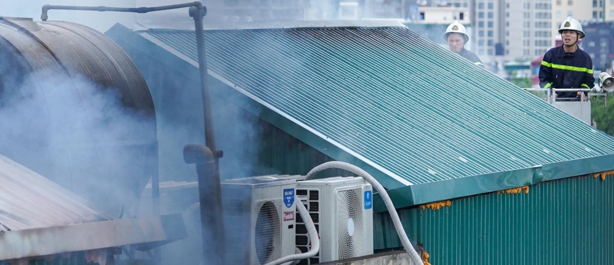 Đến 14h15, đám cháy cơ bản được khống chế. Thông tin sơ bộ ban đầu, đám cháy xuất phát từ khu vực tầng 6 quán Karaoke cao 6 tầng đang dừng hoạt động để sửa chữa.