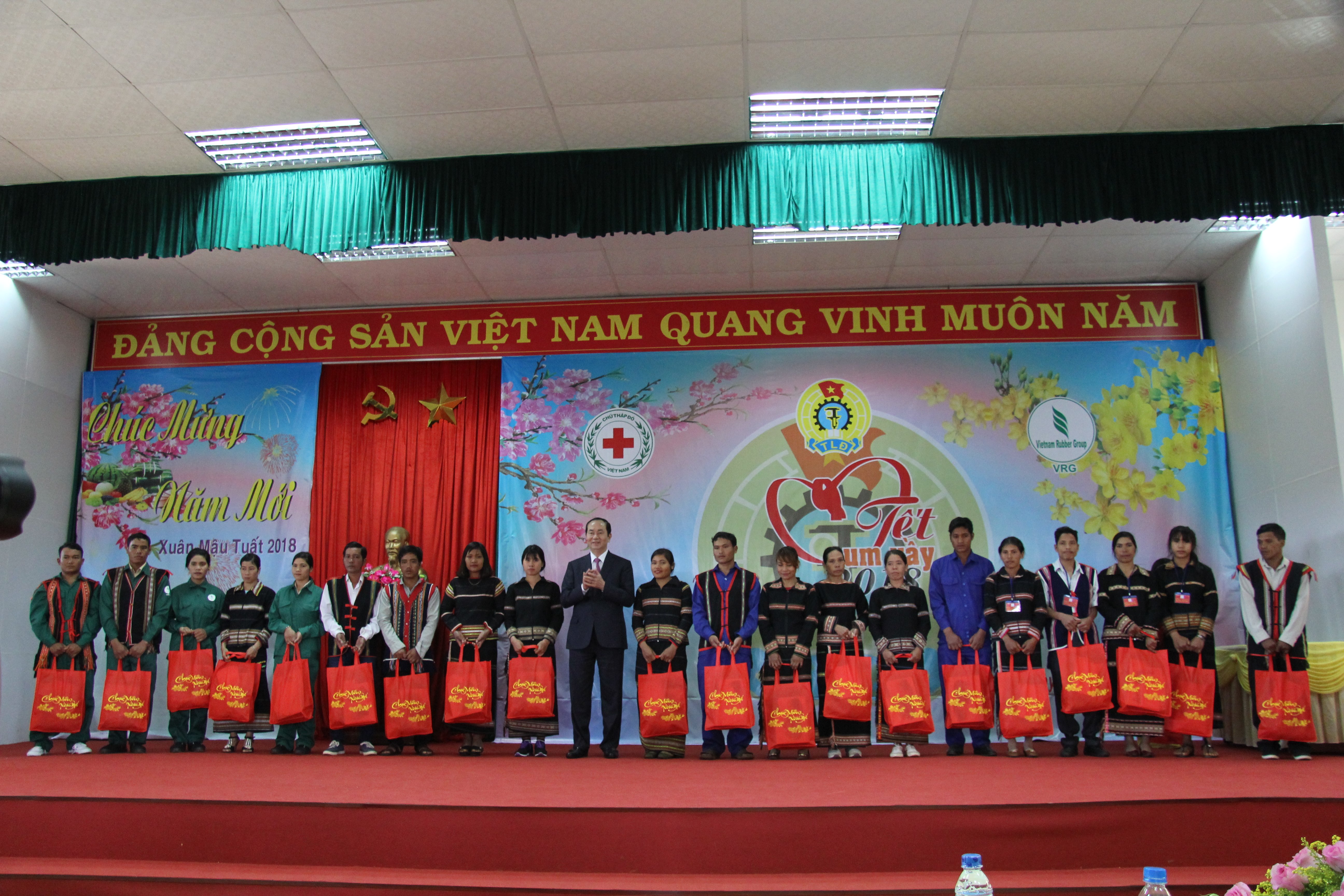 Ngoài ra, tại xã Ia Dom (huyện Đức Cơ), sau khi chúc tết, Chủ tịch nước tặng 100 xuất quà cho người dân nghèo, gia đình chính sách trong chương trình mang tên “Tết vì người nghèo và nạn nhân chất độc màu da cam” tổ chức tại UBND xã Ia Dom.