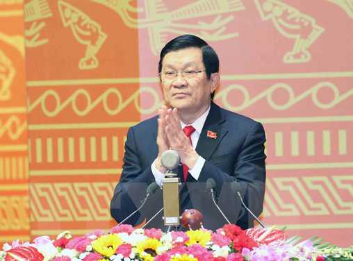 | Đồng chí Trương Tấn Sang, Ủy viên Bộ Chính trị, Chủ tịch nước đọc Diễn văn khai mạc Đại hội Đảng XII. (Ảnh: TTXVN) |