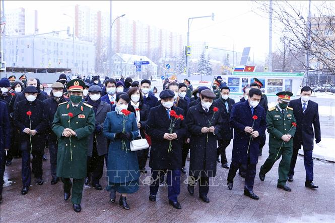 Chủ tịch nước Nguyễn Xuân Phúc cùng Đoàn đại biểu cấp cao Việt Nam dâng hoa tại Tượng đài Chủ tịch Hồ Chí Minh.