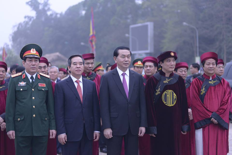 Chủ tịch nước Trần Đại Quang cùng các đại biểu chuẩn bị lên Đền Thượng dâng hương tưởng niệm các Vua Hùng. (Ảnh: Thế Sơn)
