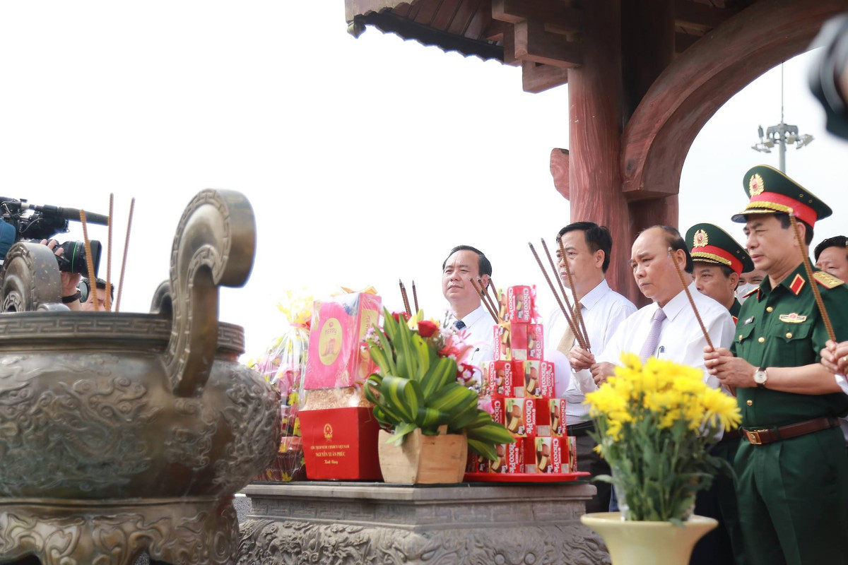Chủ tịch nước Nguyễn Xuân Phúc cùng lãnh đạo các bộ, ngành và tỉnh Quảng Trị dâng hương tưởng niệm anh hùng liệt sĩ tại Thành cổ Quảng Trị.