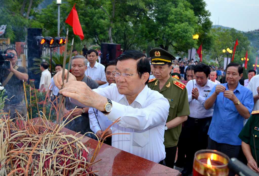 | Đồng chí Trương Tấn Sang, Ủy viên Bộ Chính trị, Chủ tịch nước CHXHCN Việt Nam cùng các đồng chí lãnh đạo tỉnh Quảng Ninh, lãnh đạo một số bộ, ban, ngành tưởng niệm các anh hùng liệt sỹ. |