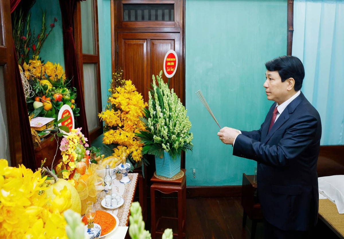 Trong không khí trang nghiêm, xúc động của ngày đầu xuân năm mới, Chủ tịch nước Lương Cường đã thắp nén hương thơm, thành kính tưởng nhớ công lao trời biển của Chủ tịch Hồ Chí Minh, vị Lãnh tụ kính yêu của dân tộc Việt Nam, người đã suốt đời cống hiến, hy sinh vì độc lập tự do của Tổ quốc, vì hạnh phúc của Nhân dân.