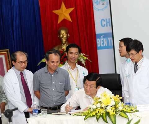 Chiều 21/9, Chủ tịch nước Trương Tấn Sang cùng đoàn công tác, lãnh đạo tỉnh Gia Lai đã đến thăm Bệnh viện Đại Học Y Dược Hoàng Anh Gia Lai.