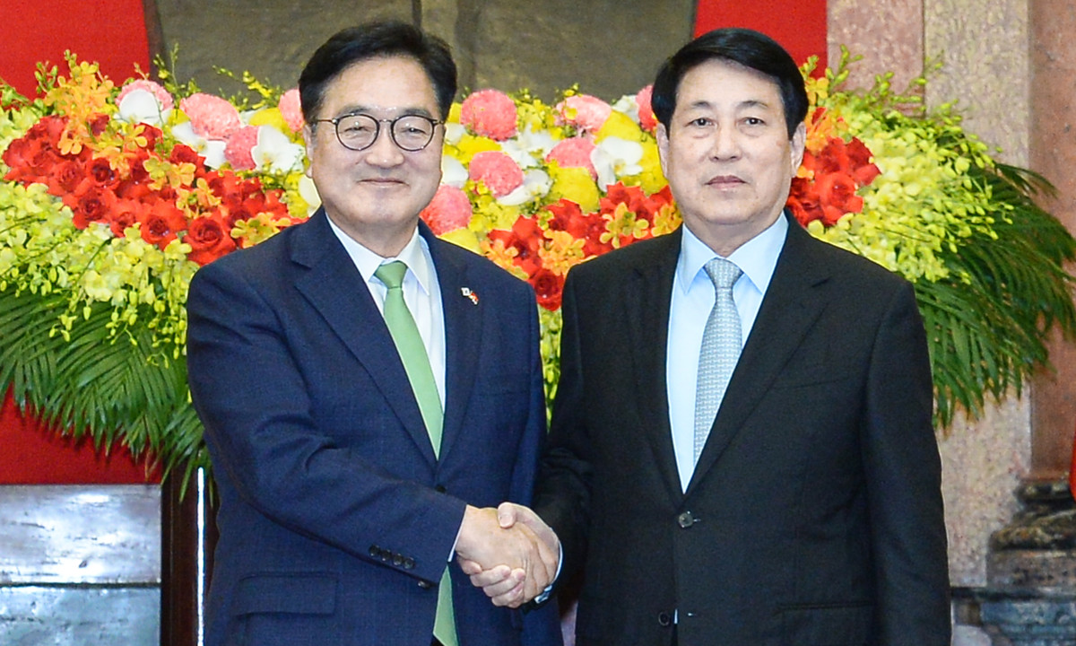 Chủ tịch nước Lương Cường tiếp Chủ tịch Quốc hội Hàn Quốc Woo Won Shik.