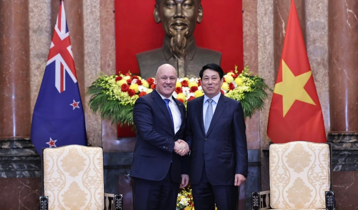 Chủ tịch nước Lương Cường hoan nghênh Ngài Christopher Luxon lần đầu tiên sang thăm chính thức Việt Nam trên cương vị Thủ tướng New Zealand; nhấn mạnh chuyến thăm của Thủ tướng Luxon đã góp phần tạo xung lực mới, đưa quan hệ hai nước lên Đối tác Chiến lược Toàn diện, đúng vào dịp hai nước kỷ niệm 50 năm thiết lập quan hệ ngoại giao (1975 - 2025).