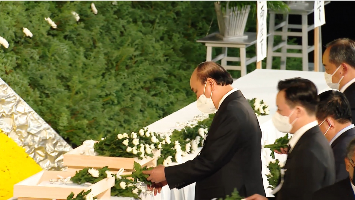 Ngày 27/9, thay mặt Lãnh đạo Đảng, Nhà nước và nhân dân Việt Nam, Ủy viên Bộ Chính trị, Chủ tịch nước Nguyễn Xuân Phúc dẫn đầu đoàn đại biểu cấp cao Việt Nam dự lễ quốc tang cố Thủ tướng Nhật Bản Abe Shinzo được tổ chức tại Trung tâm sự kiện Budokan, Tokyo, Nhật Bản.