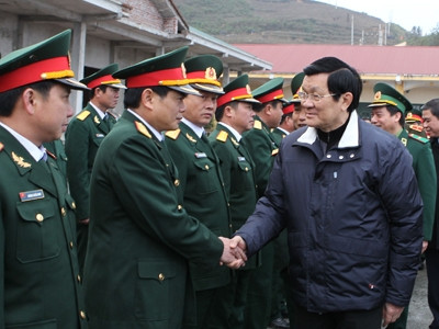 Chủ tịch nước ân cần thăm hỏi tình hình công tác, điều kiện ăn ở, công tác chuẩn bị đón Tết của cán bộ, chiến sỹ Đoàn Kinh tế quốc phòng 314 và Đồn Biên phòng 219.