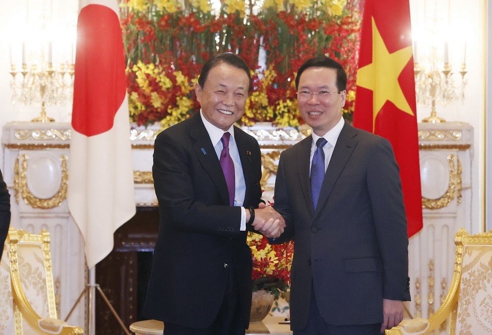 Tại cuộc tiếp Phó Chủ tịch Đảng Dân chủ tự do (LDP) Aso Taro, Chủ tịch nước Võ Văn Thưởng đánh giá cao những đóng góp quan trọng của ông Aso Taro trên cương vị Thủ tướng Nhật Bản trước đây cũng như hiện nay trong vai trò Phó Chủ tịch Đảng LDP đối với quan hệ Việt Nam - Nhật Bản.