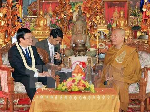 Tại buổi thăm Đại Tăng Thống Tep Vong và Đại Tăng Thống Bour Kry, Chủ tịch nước Trương Tấn Sang hoan nghênh sự hợp tác giữa Phật giáo hai nước góp phần quan trọng vào việc tăng cường quan hệ hữu nghị, đoàn kết giữa nhân dân hai nước Việt Nam-Campuchia.