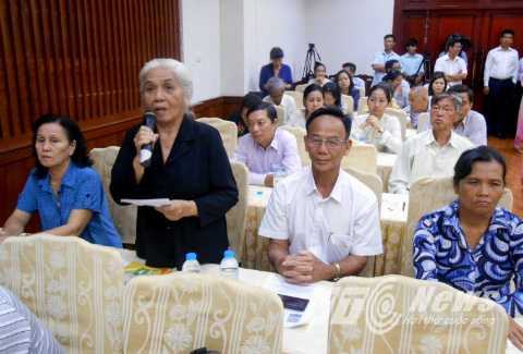 | Cử tri quận 1 nêu ý kiến tại hội nghị. Ảnh: Phan Cường |