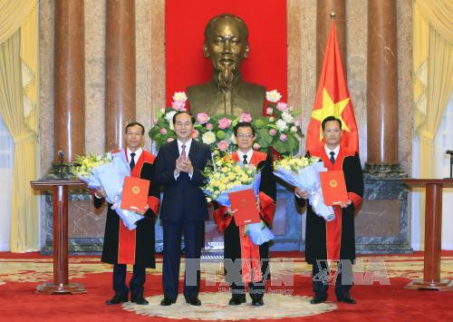 Phát biểu chúc mừng và giao nhiệm vụ cho các Phó Chánh án, Thẩm phán Tòa án nhân dân tối cao mới được bổ nhiệm, Chủ tịch nước Trần Đại Quang nhấn mạnh, tòa án là cơ quan duy nhất được nhân danh Nhà nước để đưa ra những quyết định, phán xét về hành vi của một người bị truy tố trước tòa án là có tội hay không có tội và được quyền áp dụng hình phạt theo quy định của pháp luật đối với người có hành vi phạm tội.