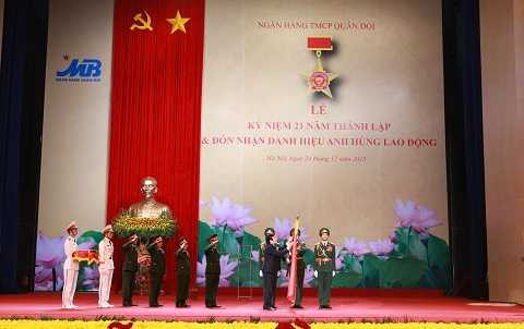 (VTC News) - Ngày 24/12/2015, tại Trung tâm Hội nghị Quốc gia Hà Nội, Chủ tịch Nước Trương Tấn Sang đã thay mặt Lãnh đạo Đảng, Nhà nước trao tặng danh hiệu Anh hùng Lao động năm 2015 cho Ngân hàng TMCP Quân đội (MB) vì những thành tích xuất sắc trong hoạt động kinh doanh giai đoạn 2005 – 2014.