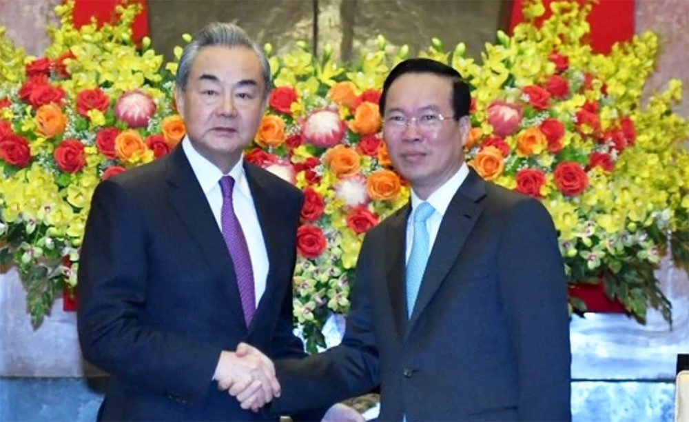 Chiều 1/12, tại Phủ Chủ tịch, Chủ tịch nước Võ Văn Thưởng đã tiếp ông Vương Nghị, Ủy viên Bộ Chính trị, Chủ nhiệm Văn phòng Ủy ban công tác đối ngoại Trung ương Đảng Cộng sản Trung Quốc, Bộ trưởng Bộ Ngoại giao nước Cộng hòa nhân dân Trung Hoa Vương Nghị nhân dịp sang Việt Nam, tổ chức Phiên họp lần thứ 15 Ủy ban Chỉ đạo hợp tác song phương Việt Nam - Trung Quốc.