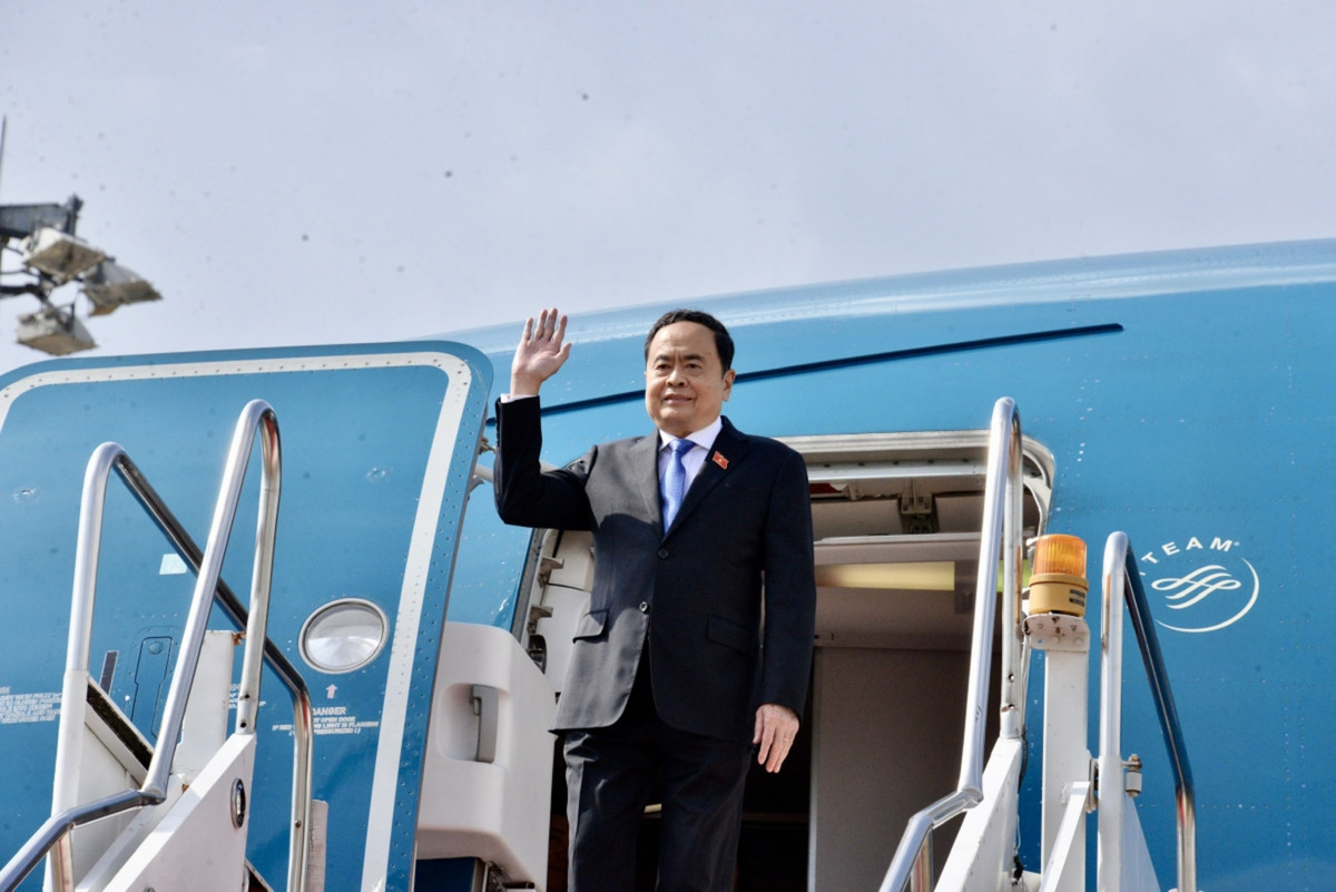 Chủ tịch Quốc hội Trần Thanh Mẫn đến sân bay Wattay ở Thủ đô Vientiane, Lào.