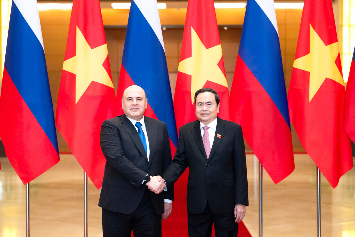 Chủ tịch Quốc hội Trần Thanh Mẫn đón Thủ tướng Liên bang Nga Mikhail Vladimirovich Mishustin.