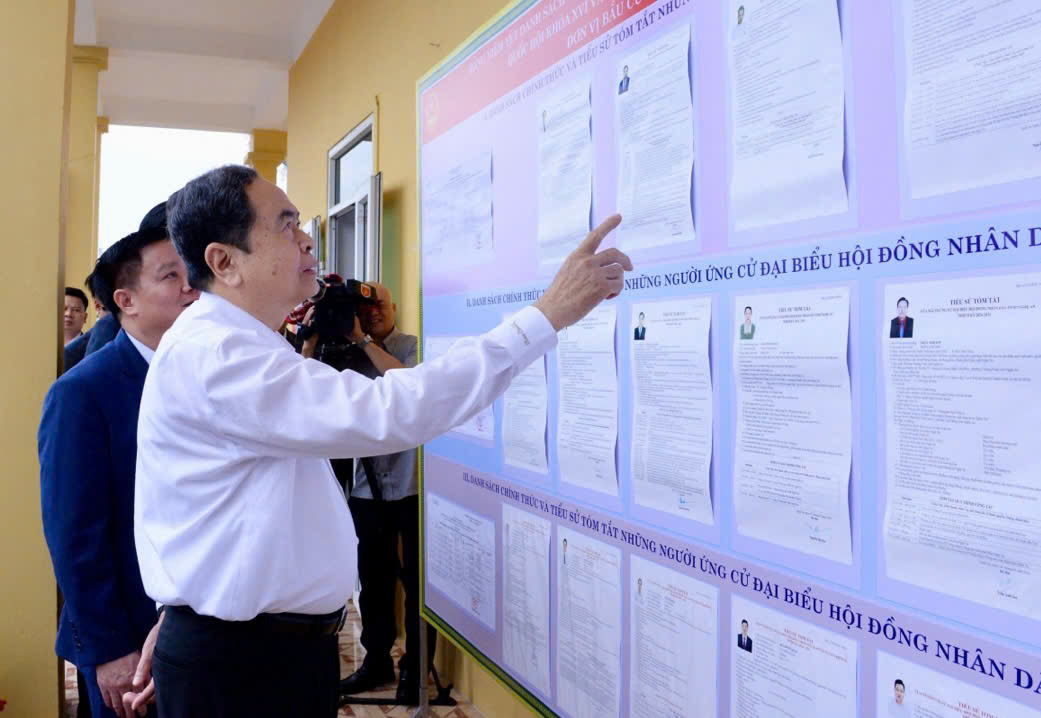 Chủ tịch Quốc Hội Trần Thanh Mẫn kiểm tra công tác chuẩn bị Bầu cử tại xã Hưng Nguyên, tỉnh Nghệ An.