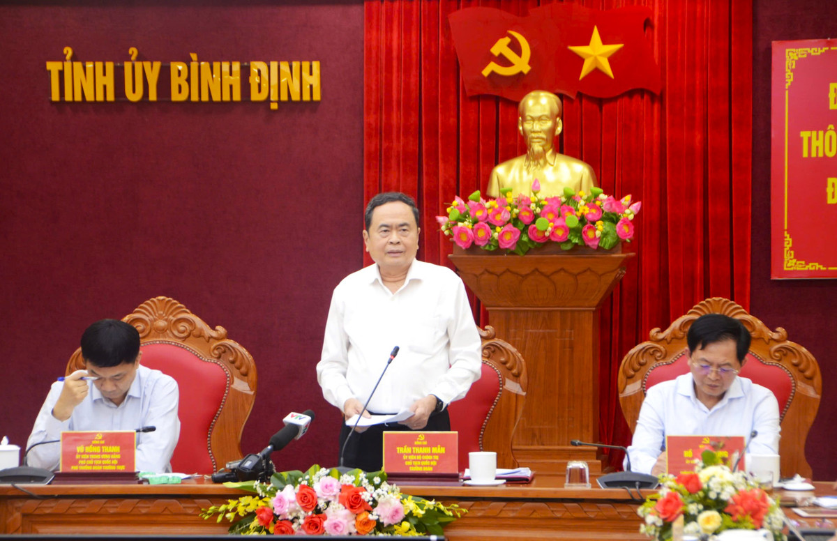 Tiếp tục chuyến công tác tại các tỉnh miền Trung, sáng 13/3, Chủ tịch Quốc hội Trần Thanh Mẫn, Trưởng đoàn kiểm tra số 1910 của Bộ Chính trị làm việc với lãnh đạo của tỉnh Bình Định thông báo dự thảo báo cáo kết quả kiểm tra đối với Ban Thường vụ tỉnh ủy về việc tinh gọn bộ máy; công tác chuẩn bị Đại hội Đảng bộ các cấp tiến tới Đại hội đại biểu toàn quốc lần thứ XIV của Đảng; đột phá phát triển khoa học, công nghệ, đổi mới sáng tạo và chuyển đổi số quốc gia; Đề án bổ sung về phát triển kinh tế - xã hội năm 2025 với mục tiêu tăng trưởng đạt 8% trở lên.