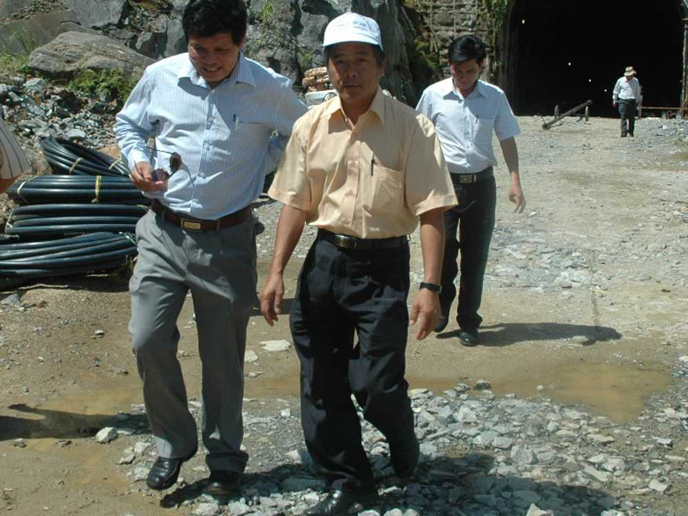 Ông Quý (giữa) kiểm tra công trình thủy điện Thượng Kon Tum Ảnh: Văn Phương